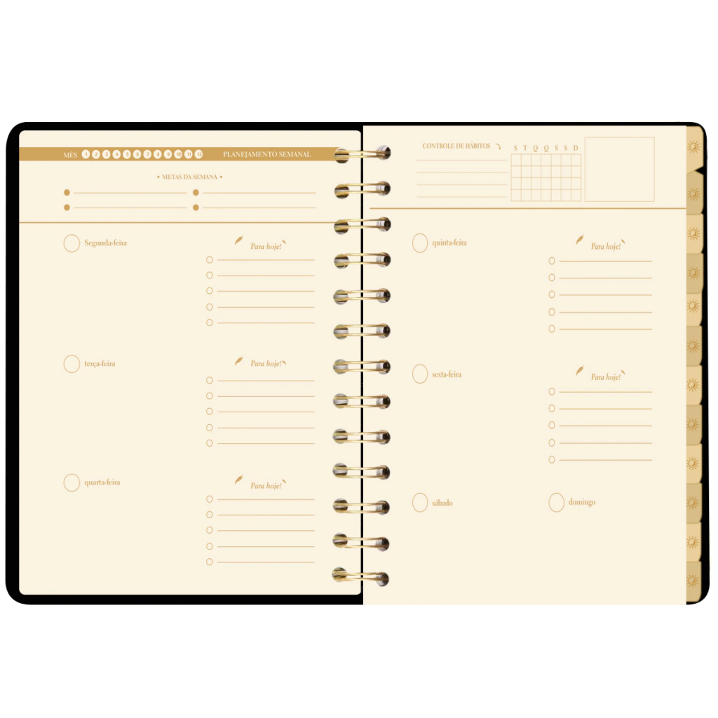 El Planificador no tiene fecha, ideal para quienes buscan flexibilidad, permite comenzar a utilizarlo en cualquier época del año, sin la limitación de fechas predefinidas. Con una tirada limitada, esta agenda ofrece páginas para notas, objetivos y planificación diaria, semanal y mensual, brindándote control total sobre tus actividades y compromisos.