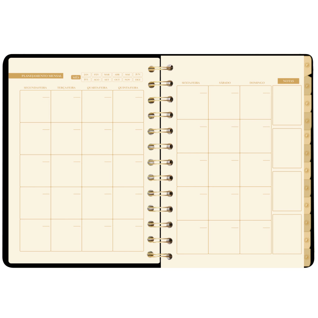 The planner is undated (without a date), ideal for those looking for flexibility, and allows you to start using it at any time of the year, without the limitation of pre-defined dates. With a limited edition, this planner offers pages for notes, goals and daily, weekly and monthly planning, giving you total control of your activities and commitments.